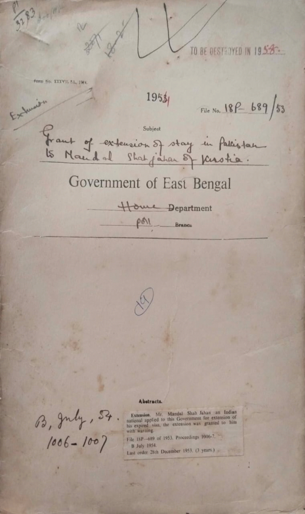Grant of extension of Stay in Pakistan to Mandal Shah jahan of Kushtia.