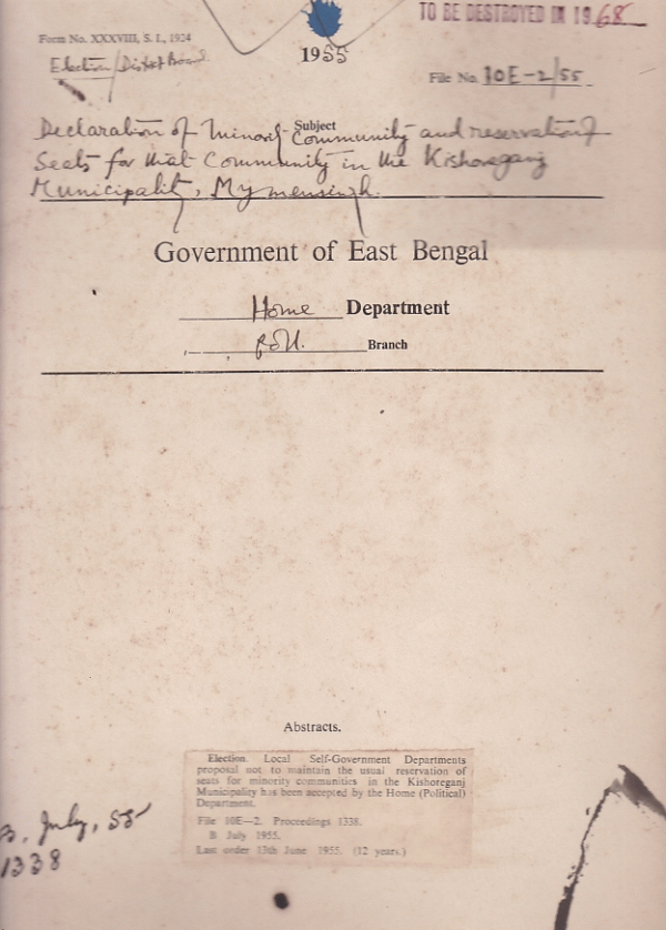 Declaration of not to maintain usual reservation of Minority communities in the Kishorgonj municipality.