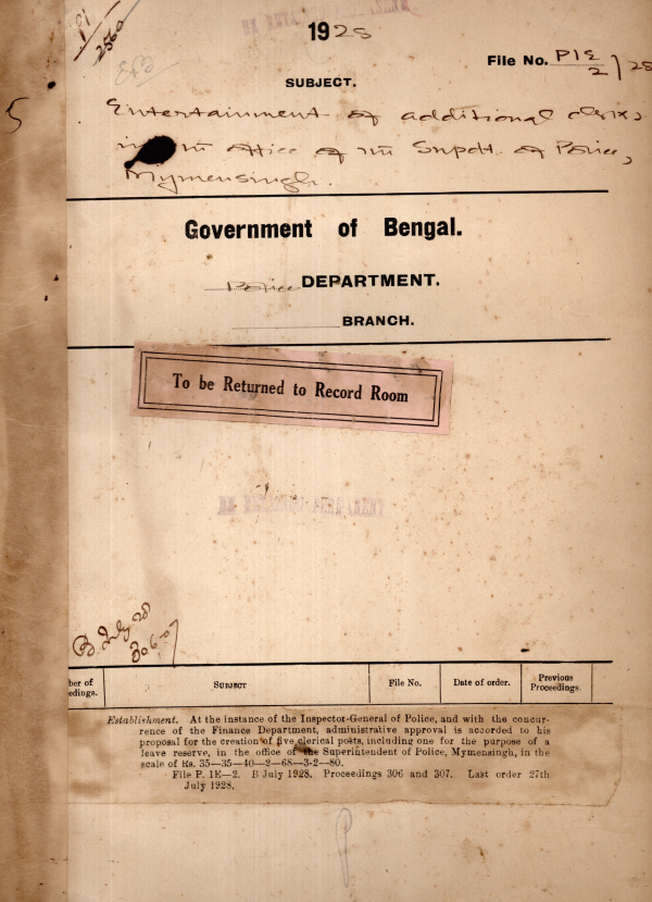 Entertainment of additional clerk in the office of the S.P. Mymensingh.