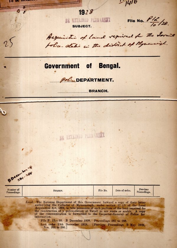 Acquisition of land for the Tarail P.S. Mymensingh.