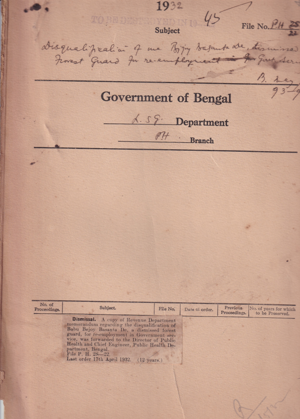 Disqualification of Dejoy Basanta De, dismissed forest Guard for reemployment for govt. Service.