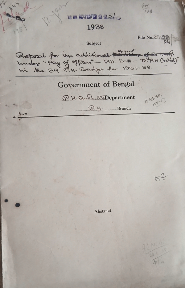 Proposal for an additional grant under "Pay of officers" P.it. Estt-D.P.H. in the 39 P.H. Budget for 1937-38.