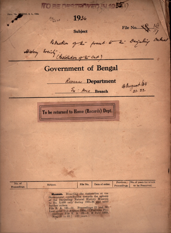 Directing restoration or the Government contribution towards, the up keep of the Darjeeling Natural History Museum to Rs. 3600 only during 1935-36 and until further orders.
