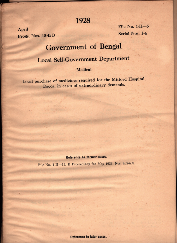 Local purchase of medicines required for the Mitford Hospital, Dacca, n cases of extraordinary demands