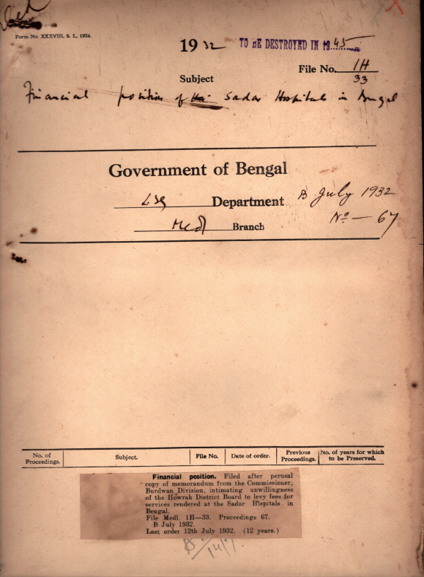 Financial Position of Sadar Hospital in Bengal.