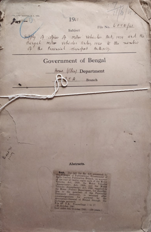 | Rack No. 42, Bundle No. 01, Sl No. 05 Reprinting of the Bengal Land Acquisition Manual Part I and Part II, 1917. | Rack No. 42, Bundle No. 01, Sl No. 05 Grant of development load for the year 1956-57. | Rack No. 42, Bundle No. 01, Sl No. 05 Purchase of a motor boat for the Superintendent of the Chittagong Hill Tracts at the cost of Govt. | Rack No. 42, Bundle No. 01, Sl No. 05 Proposed grant of a fixed Station wireless License to Mr. H.R. Perks. | Rack No. 42, Bundle No. 01, Sl No. 05 Acquisition of land for Manufacturing bricks for improvement of Dasunia-Mulladhuli Road in the district of Pabna. | Rack No. 42, Bundle No. 01, Sl No. 06 Audit objection in respect of paragraph 12 of the audit report on Pabna Police Ration Store for the period from 1.11.51, 25.7.53. | Rack No. 42, Bundle No. 01, Sl No. 06 Contribution of an article for publication in the Annual issue of the Motor Transport. |