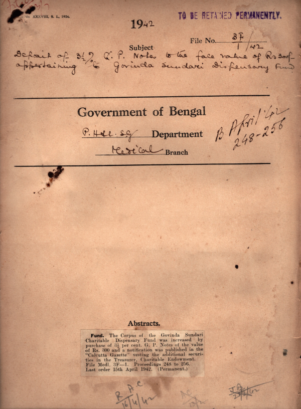 | Rack No. 09; Bundle No. 86 SL No. 6604 Allowance of S.A.S. Dr. Shamsuddin Ahmad and Dr. Kanailal Basu for doing the duties of Civil Medical officers Kurseong. | Rack No. 09; Bundle No. 86 SL No. 6605 Fundamental and Subsidiary Rules Amendment. | Rack No. 09; Bundle No. 86 SL No. 6606 Assistance to the Administration or General Eastern Frontier Communications. | Rack No. 09; Bundle No. 86 SL No. 6607 Distribution of the Census Report of India, 1941. | Rack No. 09; Bundle No. 86 SL No. 6608 Deposit of 31/2% G.P. Notes to the face Value of Rs. 300/- Appertaining to Govinda Sundari Dispensary Fund. | Rack No. 09; Bundle No. 86 SL No. 6609 Net grant statement for 1941-42. | Rack No. 09; Bundle No. 86 SL No. 6610 Supply of livery to the additional female Cook for Nurses quarters Mitford Hospital, Dacca |