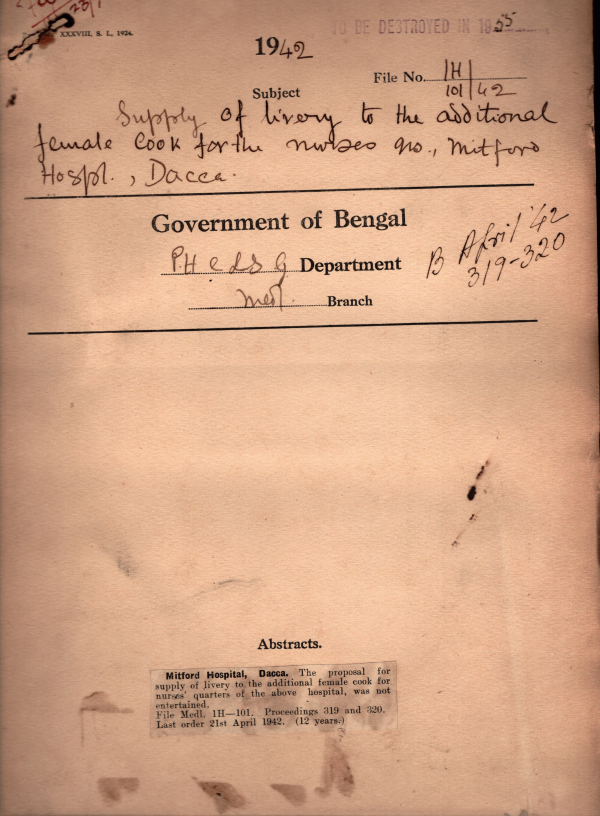 Supply of livery to the additional female Cook for Nurses quarters Mitford Hospital, Dacca