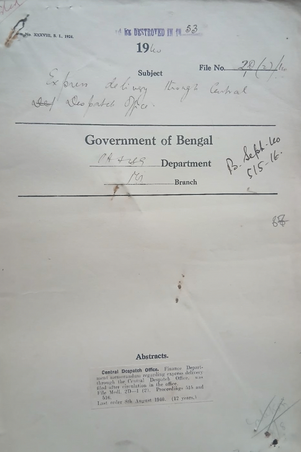 | Rack No. 8, Bundle No. 76, Sl No. 5885 Election of Lt. Col. B.G. Mallya, I.M.S., on the Bengal Council of Medical Registration. | Rack No. 8, Bundle No. 76, Sl No. 5886 Surrender of S.A.S. to Military Duty. | Rack No. 8, Bundle No. 76, Sl No. 5887 Opening of the X-ray Institute attached to the Suri Sadar Hospital. | Rack No. 8, Bundle No. 76, Sl No. 5888 Express delivery through the Central Despatcch Office. | Rack No. 8, Bundle No. 76, Sl No. 5889 A.Q. by Mr. Birendra Kishore Rai Chowdhury regarding study leave of B.M.S. Officers. | Rack No. 8, Bundle No. 76, Sl No. 5890 A.Q. by Mr. Abdul Bari regarding Study leave of B.M.S. Officers. | Rack No. 8, Bundle No. 76, Sl No. 5891 Remission of fees from Paying Patients of P.G.H. during 36-37 and 1937-38. |