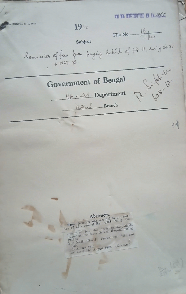 | Rack No. 8, Bundle No. 76, Sl No. 5888 Express delivery through the Central Despatcch Office. | Rack No. 8, Bundle No. 76, Sl No. 5889 A.Q. by Mr. Birendra Kishore Rai Chowdhury regarding study leave of B.M.S. Officers. | Rack No. 8, Bundle No. 76, Sl No. 5890 A.Q. by Mr. Abdul Bari regarding Study leave of B.M.S. Officers. | Rack No. 8, Bundle No. 76, Sl No. 5891 Remission of fees from Paying Patients of P.G.H. during 36-37 and 1937-38. | Rack No. 8, Bundle No. 76, Sl No. 5892 Stocks of Cinchona. | Rack No. 8, Bundle No. 76, Sl No. 5893 Bengal Passage Rules Amendment. | Rack No. 8, Bundle No. 76, Sl No. 5894 L.A. for a dispensary at Lakshmanhati in the District of Rajshahi. |