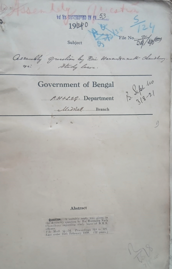 A.Q. By Rai Harendra Nath Chowdhury regarding study leave of B.M.S. officers.