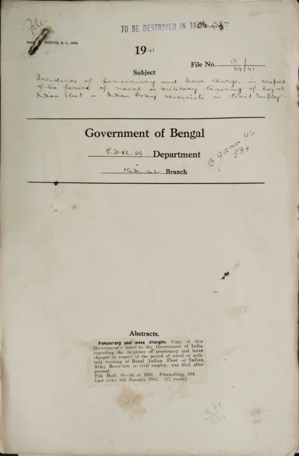 | Rack No. 9, Bundle No. 82, Sl No. 6347 Capital grant to the Bankura Leper Home | Rack No. 9, Bundle No. 82, Sl No. 6348 Payment of gratuity to Lachminia, daughter of insane Reghu Ram, late Peon of the S.N.P Hospital, Calcutta. | Rack No. 9, Bundle No. 82, Sl No. 6349 Allowance to lt. Col. F.J. Anderson, I.M.S. and Lt. Col. H.E. Marry I.M.S. for doing the duties of Principal and Superintendent of the M.C.H. Calcutta. | Rack No. 9, Bundle No. 82, Sl No. 6350 Incidence of Pensioner and leave charges in respect of the period of naval training of Royal Indian Fleet or Indian Army reservists in Civil employ. | Rack No. 9, Bundle No. 82, Sl No. 6351 Maintenance of the Charitable dispensary at Betai by the District Board, Nadia. | Rack No. 9, Bundle No. 82, Sl No. 6352 Rules regarding recruitments of B.M.S. officers. | Rack No. 9, Bundle No. 82, Sl No. 6353 Case of Cr. lunatic Haider Khan. |