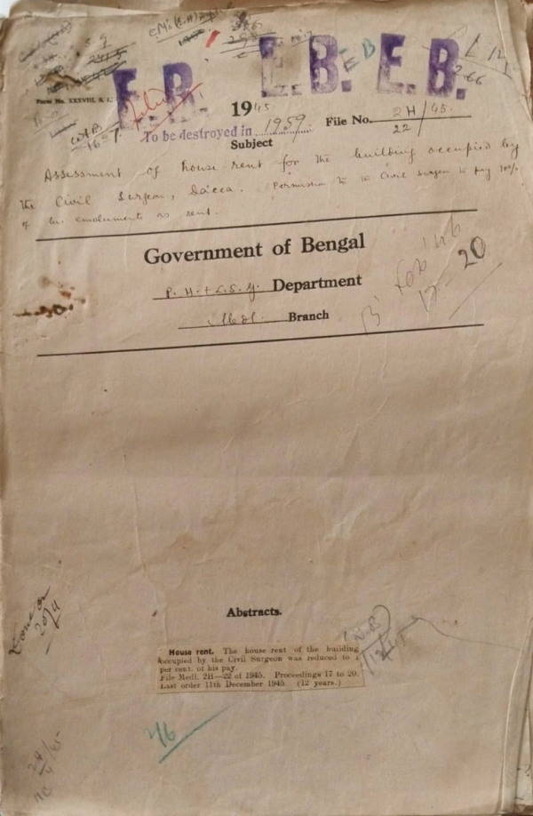 Assessment of house rent for the building occupied by the Civil Surgeon, Dacca.