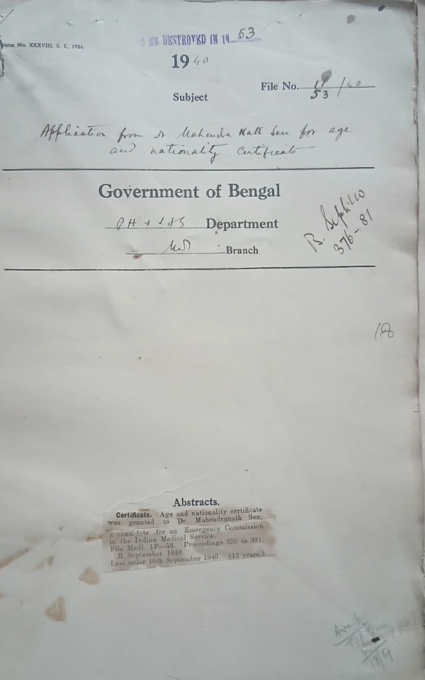 Application from Dr. Mahendranath Sen, for age and nationality Certificate.