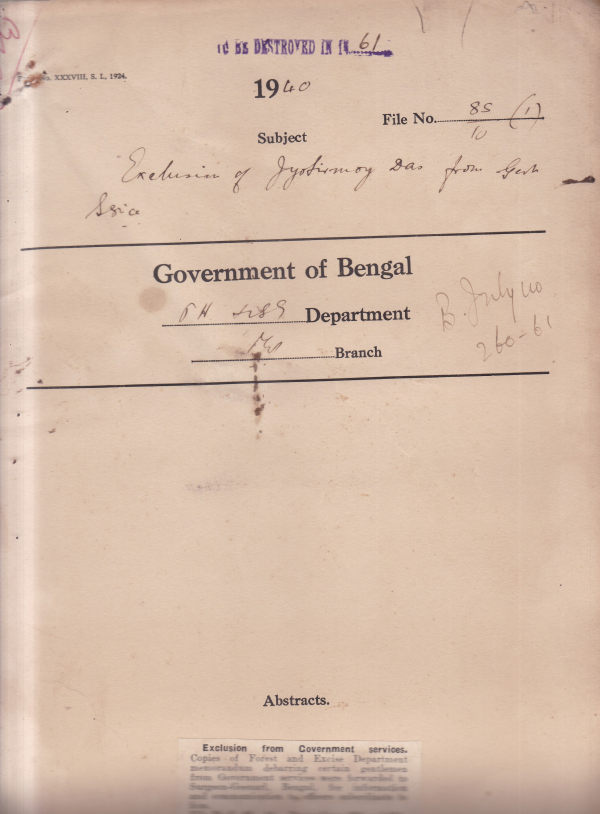 Exclusion of Jo. Jyotirmay Das from Govt. Service.