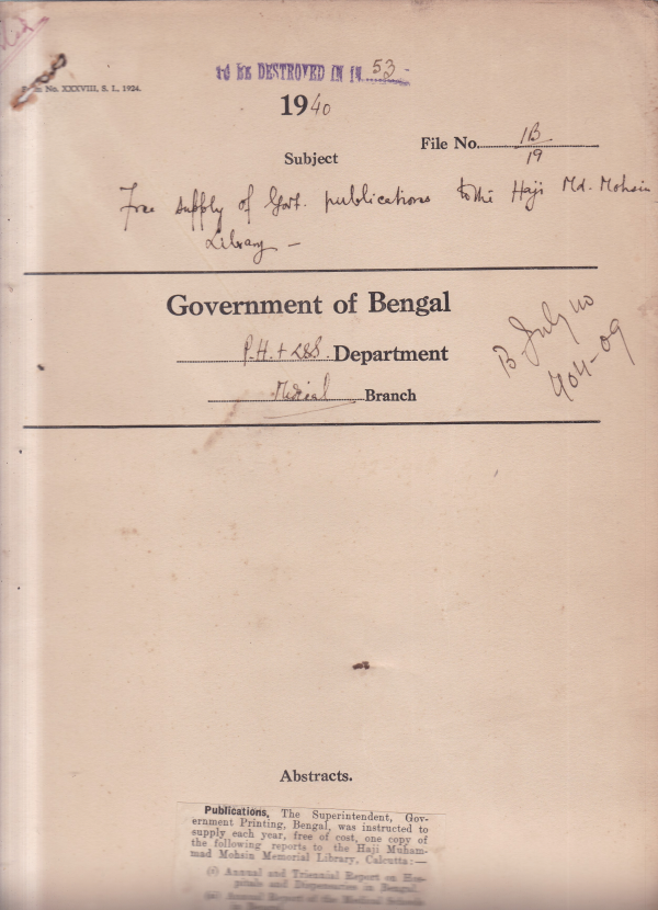 Free supply of Govt. publications to the Haji Md. Mohsin Library.