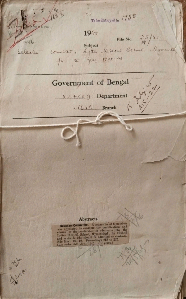 Selection committee, Lytton Medical school, Mymensingh for the year 1945-46.