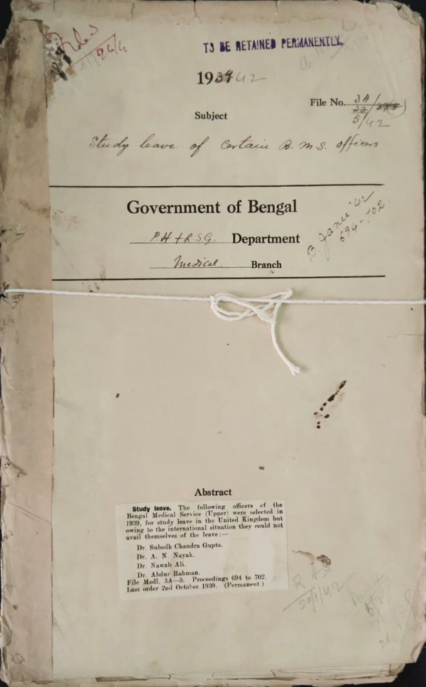 | Rack No. 9, Bundle No. 82, Sl No. 6364 C.Q. Mr. Humayun Kabir regarding the death of a female Patient in the Faridpur Sadar Hospital. | Rack No. 9, Bundle No. 82, Sl No. 6365 Report of the Scholarships Committee. | Rack No. 9, Bundle No. 82, Sl No. 6366 Cost of Printing of the question papers of the Faculty at the Bengal Govt. Press Alipore. | Rack No. 9, Bundle No. 82, Sl No. 6367 Study leave of Certain B.M.S. Officers. | Rack No. 9, Bundle No. 82, Sl No. 6368 Essential Drugs (Census) Orders, 1941. | Rack No. 9, Bundle No. 82, Sl No. 6369 Proposal for the opening of a chronic depot for incurable patients, at the Ranchi Indian Mental Hospital. | Rack No. 9, Bundle No. 82, Sl No. 6370 Extension of the temporary staff employed in connection with wave in the S.G. Office. |