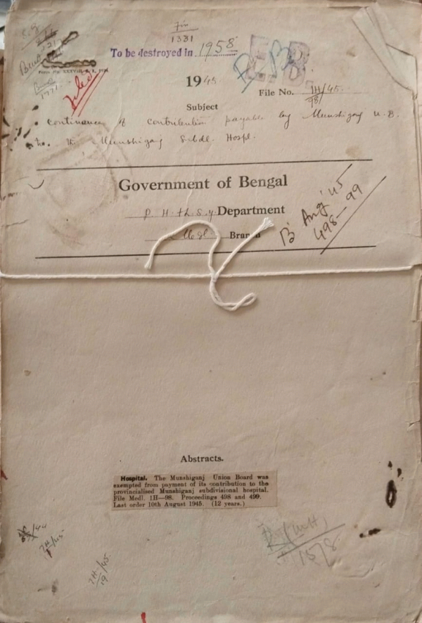 Continuance of contribution payable by Munshigonj U.B. to the Munshiganj Sub Divisional Hospital.