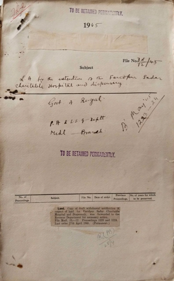 L.A. for the extension of the Fardipur Sadar Charitable Hospital.