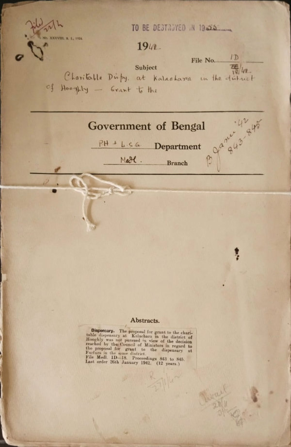 Charitable Dispensary at Kalachara in the District of Hooghly Grant to the