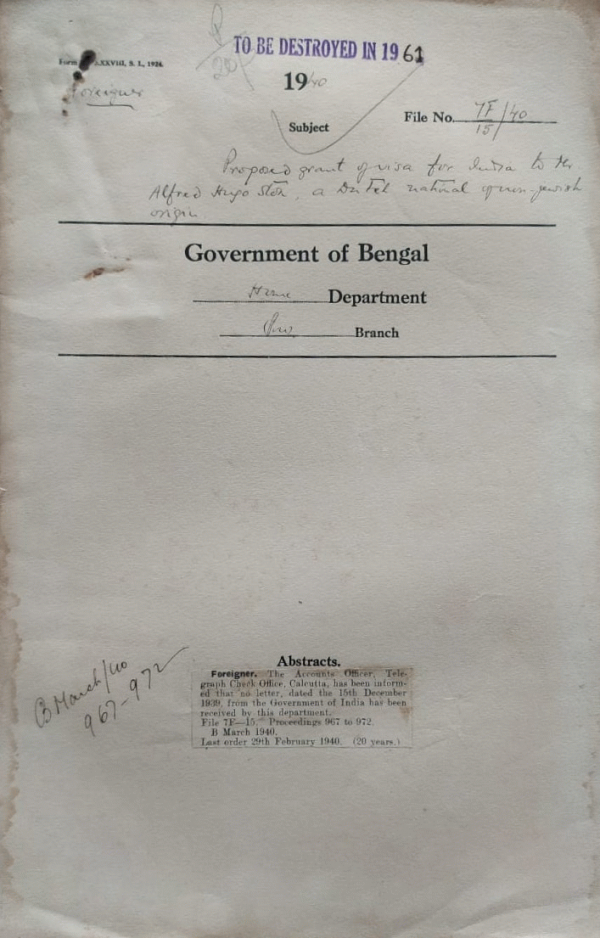 | Rack No. 42, Bundle No. 04, Sl No. 230 Special Protection in respect of Civil and Revenue litigation of India Soldiers Serving Under Special Conditions. | Rack No. 42, Bundle No. 04, Sl No. 231 Acquisition of land for Court Defense work. | Rack No. 42, Bundle No. 04, Sl No. 232 Quarterly Return of Revenue Stamps to the Commissioner for Migration and Statistics, Jerusalem, Palestine. | Rack No. 42, Bundle No. 04, Sl No. 233 Proposed grant of visa for India to Mr. Alfred Huya Ston, a Dutch National. | Rack No. 42, Bundle No. 04, Sl No. 234 Proposed grant of visa for India to Mrs. Mergot Muilender and son to enable them to come over to India. | Rack No. 42, Bundle No. 04, Sl No. 235 Grant of Visas for Burma to Some Afghan National. | Rack No. 42, Bundle No. 04, Sl No. 236 Warrant of Precedence meaning of them Class-I Provincial Service. |