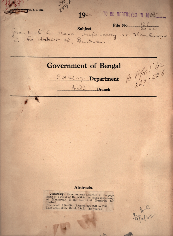 Grant to the Thana dispensary at Mantes war in the district of Burdwan.