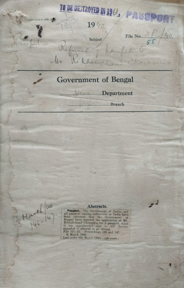 Refusal of a Passport to Mr. Rikhahchand Chowraria.