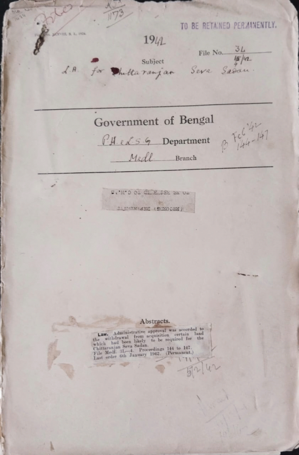| Rack No. 9, Bundle No. 83, Sl No. 6394 Deputation of Dr. A.K. Md. Hafizur Rahman temporary Assistant Surgeon, a Medical officer of Mecca and Jedda dispensaries. | Rack No. 9, Bundle No. 83, Sl No. 6395 Grant of an advance from the General Provident Fund to Babu Surath Kumar Mazumder. | Rack No. 9, Bundle No. 83, Sl No. 6396 Creation of Provident Funds for the employees of the Endowment Fund of the School of Tropical Medical, Calcutta. | Rack No. 9, Bundle No. 83, Sl No. 6397 L.A. for Chittaranjan Seva Sadan. | Rack No. 9, Bundle No. 83, Sl No. 6398 Enquiry from A.S.G.B. regarding Gaibandha Hospital and Maternity and Child Welfare Clinic. | Rack No. 9, Bundle No. 83, Sl No. 6399 Increase of the annual grant of the Khanjanpur Charitable dispensary in the Bogra District. | Rack No. 9, Bundle No. 83, Sl No. 6400 Civil Service Regulations. |