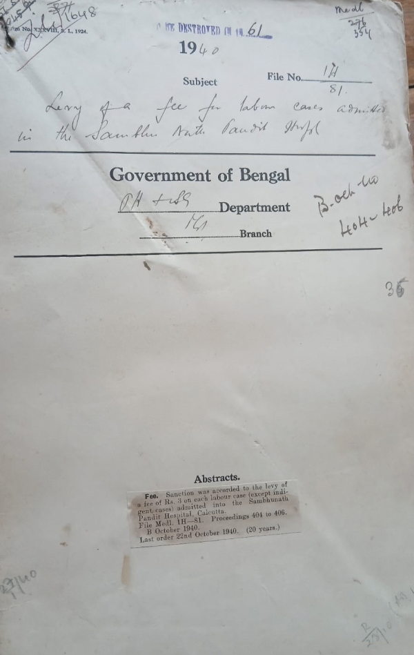 | Rack No. 8, Bundle No. 77, Sl No. 5933 A.Q. by Mr. Md Abdul Hakim Vikrampuri, regarding European & Indian wards in the Medical College Hospital & the Hospital for Tropical Diseases. | Rack No. 8, Bundle No. 77, Sl No. 5934 Lady Harding Medical College & Hospital. | Rack No. 8, Bundle No. 77, Sl No. 5935 Refund of fees for the D.T.M. & L.T.M. course at the School of Professor of Medicine. | Rack No. 8, Bundle No. 77, Sl No. 5936 Levy of a fee for labor Case admitted into the Sambhunath Pandit Hospital Calcutta. | Rack No. 8, Bundle No. 77, Sl No. 5937 Appointment of Dr. Abdur Rouf as house Medical Officer Sambhunath Pandit Hospital. | Rack No. 8, Bundle No. 77, Sl No. 5938 Grant leave of Major General P.S. Mills I.M.S. General P.S. Mills I.M.S. S.G. Bengal. | Rack No. 8, Bundle No. 77, Sl No. 5940 Posting of medical officers on return leave ex-India. |