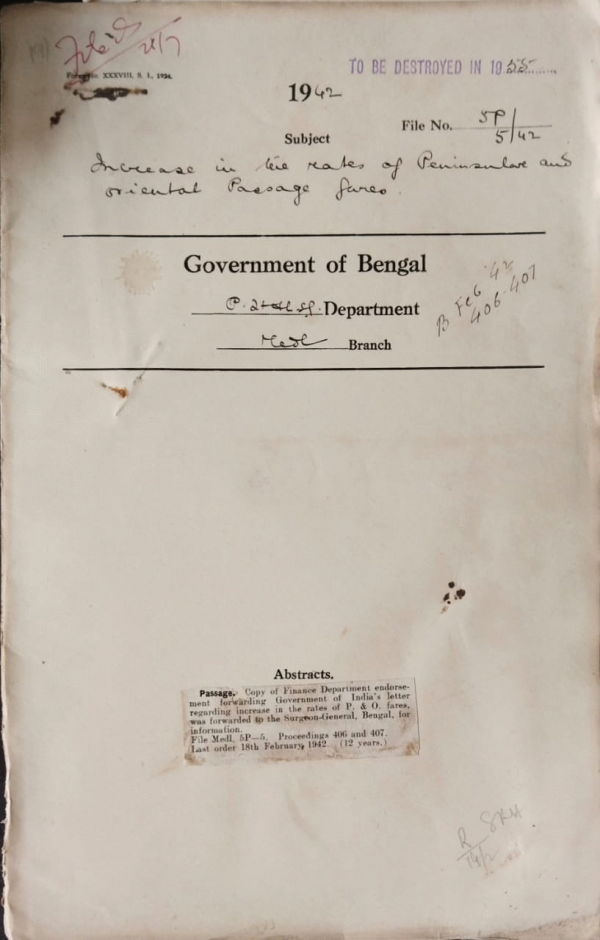 | Rack No. 9, Bundle No. 83, Sl No. 6399 Increase of the annual grant of the Khanjanpur Charitable dispensary in the Bogra District. | Rack No. 9, Bundle No. 83, Sl No. 6400 Civil Service Regulations. | Rack No. 9, Bundle No. 83, Sl No. 6401 War Injuries ordinances scheme and Regulations 1941. | Rack No. 9, Bundle No. 83, Sl No. 6402 Increase in the rates of Peninsular and oriental Passage fares. | Rack No. 9, Bundle No. 83, Sl No. 6403 Clause of 395 of Post and Telegraph Guide, September 1940 edition. | Rack No. 9, Bundle No. 83, Sl No. 6404 Extension of tenure of appointment of Dr. J.M. Modak Honorary Physician V.V. Hospital Ali pores. | Rack No. 9, Bundle No. 83, Sl No. 6405 Rules regarding execution of contracts and assurance on behalf of the governor amendments. |