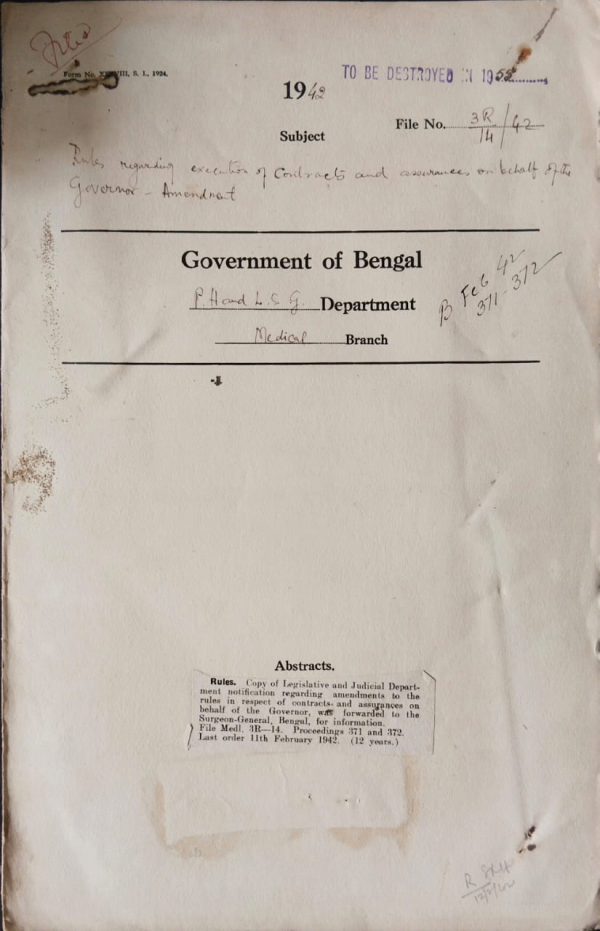 | Rack No. 9, Bundle No. 83, Sl No. 6402 Increase in the rates of Peninsular and oriental Passage fares. | Rack No. 9, Bundle No. 83, Sl No. 6403 Clause of 395 of Post and Telegraph Guide, September 1940 edition. | Rack No. 9, Bundle No. 83, Sl No. 6404 Extension of tenure of appointment of Dr. J.M. Modak Honorary Physician V.V. Hospital Ali pores. | Rack No. 9, Bundle No. 83, Sl No. 6405 Rules regarding execution of contracts and assurance on behalf of the governor amendments. | Rack No. 9, Bundle No. 83, Sl No. 6406 Change of Jurisdictions. | Rack No. 9, Bundle No. 83, Sl No. 6407 Corpus of rules and orders regulating private practices of I.M.S. officers. | Rack No. 9, Bundle No. 83, Sl No. 6408 Imaginary Budget. |