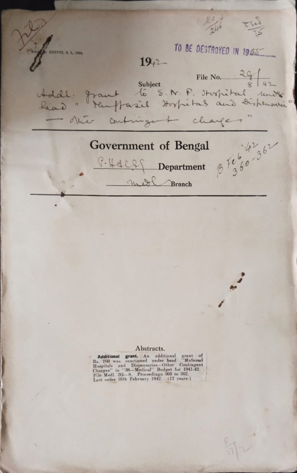 | Rack No. 9, Bundle No. 83, Sl No. 6406 Change of Jurisdictions. | Rack No. 9, Bundle No. 83, Sl No. 6407 Corpus of rules and orders regulating private practices of I.M.S. officers. | Rack No. 9, Bundle No. 83, Sl No. 6408 Imaginary Budget. | Rack No. 9, Bundle No. 83, Sl No. 6409 Additional Grant to S.N.P. Hospital under head "Mufassal Hospitals and Dispensaries other contingent Charges." | Rack No. 9, Bundle No. 83, Sl No. 6410 Payment of Telephone bills. | Rack No. 9, Bundle No. 83, Sl No. 6411 Appointment of the Honorary Junior Visiting Physician, Medical College Hospitals, Calcutta. | Rack No. 9, Bundle No. 83, Sl No. 6412 Council Question by Dr. K.S. Roy regarding admission in the Medical College, Calcutta. |