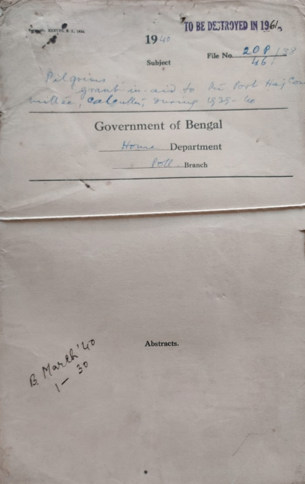 Pilgrims grant in aid to the port Haj Committee, Calcutta during 1938-1940.