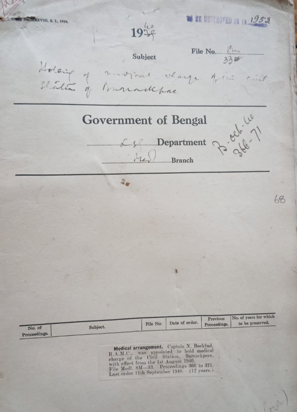 | Rack No. 8, Bundle No. 77, Sl No. 5965 Increments of pay of Drs. Ganpati Panja & Kalipada Banerji. | Rack No. 8, Bundle No. 77, Sl No. 5966 Grant of Scholarship & free Studentship to students of Chittagong & Jalpaiguri medical School. | Rack No. 8, Bundle No. 77, Sl No. 5967 Extension of tenure of appointment of Dr. Ajit Kumar Basu. | Rack No. 8, Bundle No. 77, Sl No. 5968 Holding of medical Charge of the Civil Station, Barrack pore. | Rack No. 8, Bundle No. 77, Sl No. 5969 List of authorities responsible for control over expenditure on each demand for grant. | Rack No. 8, Bundle No. 77, Sl No. 5970 Transmission of communication meant for the central Dispatch office. | Rack No. 8, Bundle No. 77, Sl No. 5971 Enquiry from the S.G.B. regarding administrative posts, non administrative posts carrying special increased pay included in the I.M.S. |