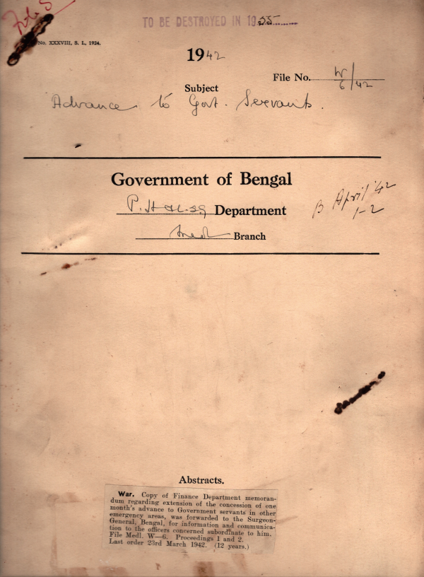 | Rack No. 09; Bundle No. 86 SL No. 6656 Restrictions on imports from neutral countries. | Rack No. 09; Bundle No. 86 SL No. 6657 Employment of honorary medical officers in Muffasil hospitals. | Rack No. 09; Bundle No. 86 SL No. 6658 Medical treatment of Security prisoner Maulvi Abdul Halim. | Rack No. 09; Bundle No. 86 SL No. 6659 Advance to Government Servants. | Rack No. 09; Bundle No. 86 SL No. 6660 Posting of Dr. Sukumar Basu Medical Officers Hijli Special Jail to medical College Hospital. | Rack No. 09; Bundle No. 86 SL No. 6661 Account of private subscriptions raised by the Calcutta Hospitals Nurses Institution. | Rack No. 09; Bundle No. 86 SL No. 6662 Fixed conveyance allowance at Rs. 30/- P.M. for the Civil Surgeon Noakhali. |