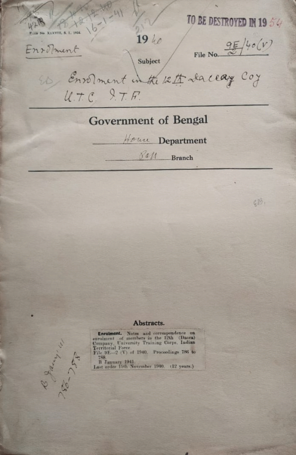 Enrolment in the 12th (Dacca) Company, University Training Corps, Indian Territorial Force.