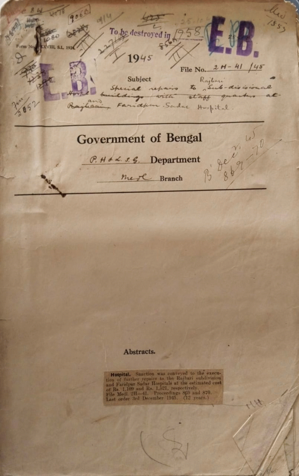 Special repairs to Rajbari Sub-Divisional Hospital and Faridpur Sadar Hospital.