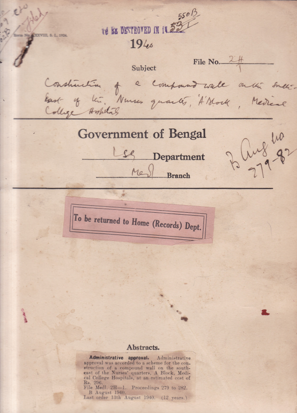 Compound Wall round the Nurses' quarters, Medical College Hospital, Calcutta.