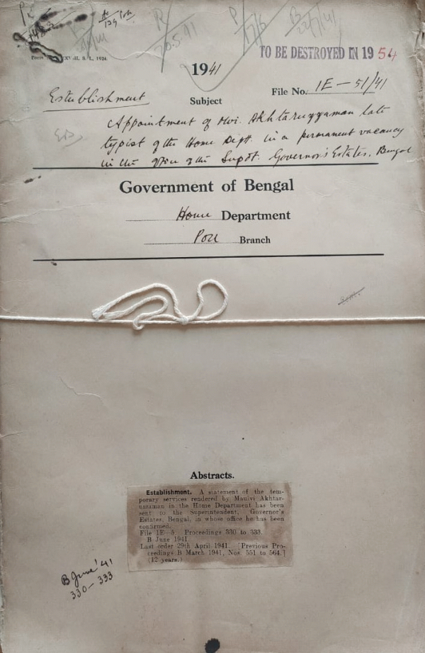Service Book of Mr. Akhtaruzzaman, Typist.