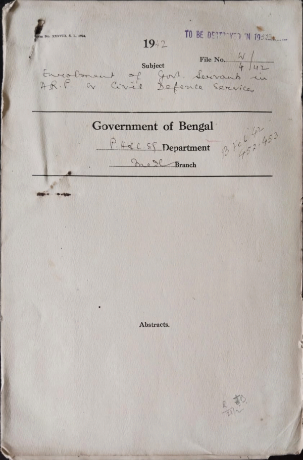 | Rack No. 9, Bundle No. 84, Sl No. 6438 Imperial Council of Agri. Research Security tenure for the subordinate staff. | Rack No. 9, Bundle No. 84, Sl No. 6439 Annual Return of Hospitals and Dispensaries in Orissa for the year 1939. | Rack No. 9, Bundle No. 84, Sl No. 6440 Establishment of a class II dispensary at Baksa Duars. | Rack No. 9, Bundle No. 84, Sl No. 6441 Procedure for expeditious settlements of family pension Claims. | Rack No. 9, Bundle No. 84, Sl No. 6441 Relaxation of rule 71 of Got. Medical School Rules in favour of Kazi A.Z.M. Abdul Huq. | Rack No. 9, Bundle No. 84, Sl No. 6442 Payment of sales tax by Govt. Department. | Rack No. 9, Bundle No. 84, Sl No. 6443 Lien of Dr. J. Nicholas on the post of superintendent, Pasteur Institute, Calcutta. |