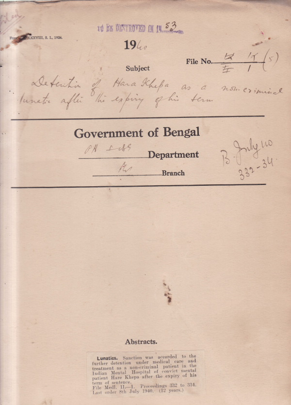 Detention of Have Khepa as a no-criminal lunatic after the expiry of his term.
