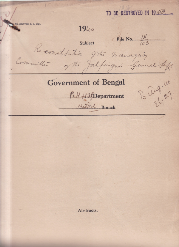 Reconstitution of the managing committee of the Jalpaiguri General Hospital.