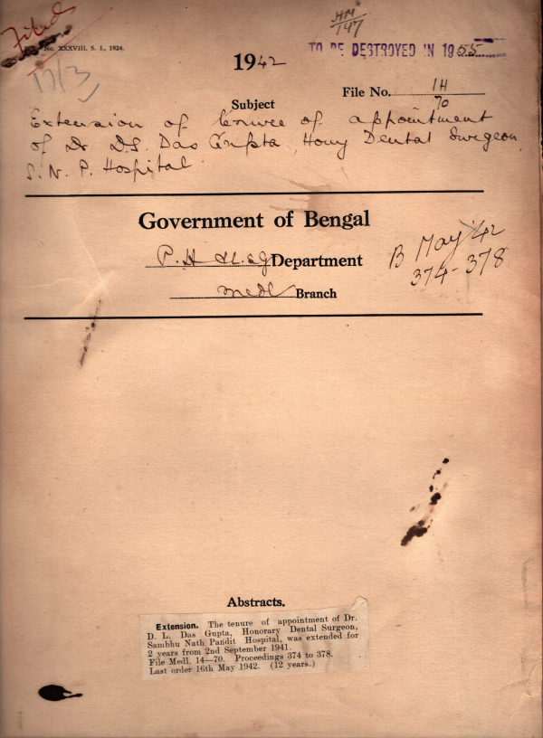 Extension of tenure of appointment of D.L Das Gupta honorary Dental Surgeon S.N.P. hospital.