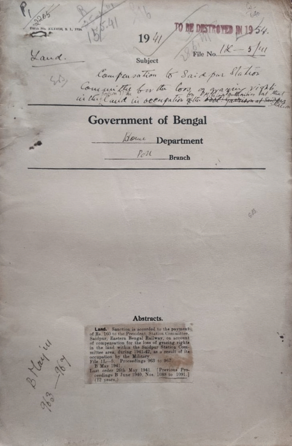 Extension of the memo of terms executed for the accommodation of troops at Saidpur.