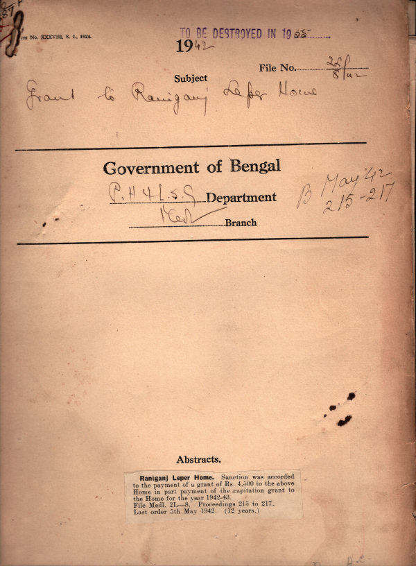 | Rack No. 09; Bundle No. 87 SL No. 6703 Additional pay of the Civil Surgeon Bankura excusive charge of the Bonstal School. | Rack No. 09; Bundle No. 87 SL No. 6704 Bengal provincial Services recruitment rules amendments. | Rack No. 09; Bundle No. 87 SL No. 6705 Examination to Babu Biswa Rangan Das an evacuee Medical student from Burma in the final L.E. | Rack No. 09; Bundle No. 87 SL No. 6706 Grant to Ranigong Leper Home. | Rack No. 09; Bundle No. 87 SL No. 6707 Grant of thana and village dispensaries Rajshahi district for 1941-42 Mirkutia. | Rack No. 09; Bundle No. 87 SL No. 6708 Pay of Dr. Heramba Chandra Maitha while acting as civil srugeon Darjeeling. | Rack No. 09; Bundle No. 87 SL No. 6709 Payment of maintain charge of a mental patient S.K. Yasin. |
