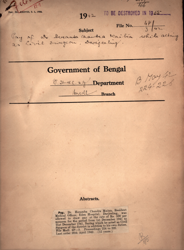 Pay of Dr. Heramba Chandra Maitha while acting as civil srugeon Darjeeling.