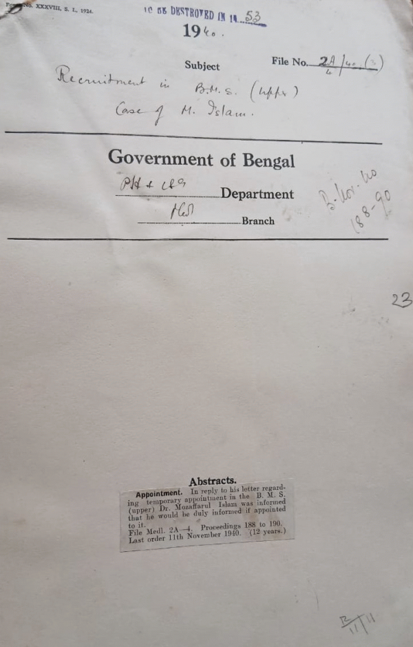 | Rack No. 8, Bundle No. 77, Sl No. 6000 Annual Report on the Civil Hospital & Dispensaries in the Bombay Province, 1939. | Rack No. 8, Bundle No. 78, Sl No. 6001 Procedure for disbursement of grants to Local Bodies. | Rack No. 8, Bundle No. 78, Sl No. 6002 Additional grant under District Medical Establishment T.A. | Rack No. 8, Bundle No. 78, Sl No. 6003 Method of recruitment introduction of Examination System in the recruitment in the B.M.S. | Rack No. 8, Bundle No. 78, Sl No. 6004 High Commissioner's Budget for 1940-41. | Rack No. 8, Bundle No. 78, Sl No. 6005 Application from Certain doctors for war services were forwarded to the Home (Political) Department. | Rack No. 8, Bundle No. 78, Sl No. 6006 Application for war services. |