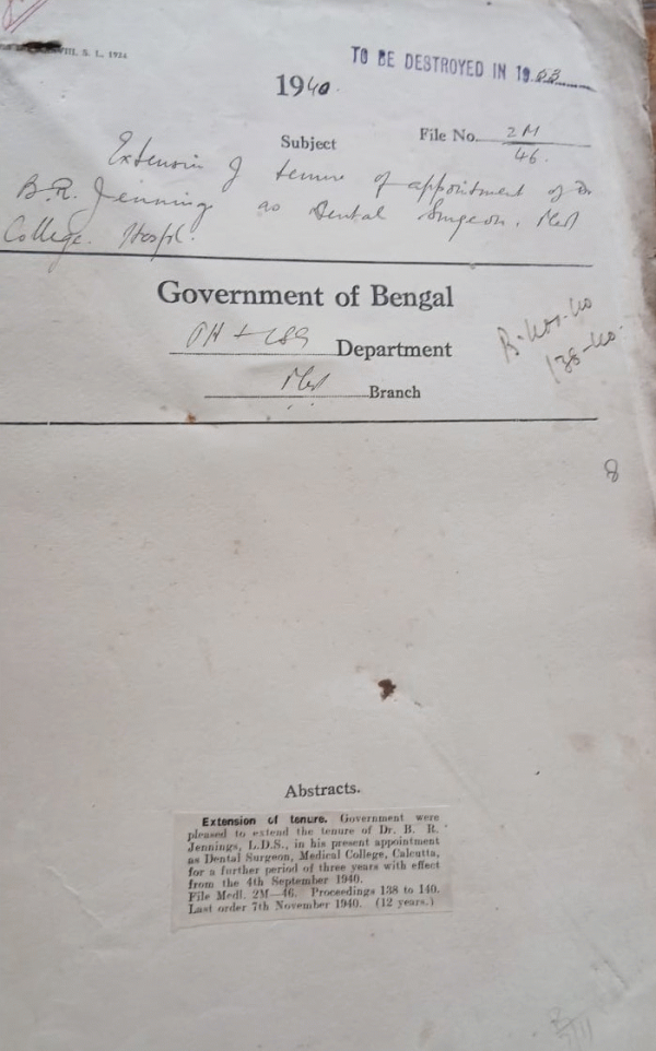 Extension of tenure of appointment of Dr. B.R. Jennings, as Dental Surgeon, Medical College Hospital.