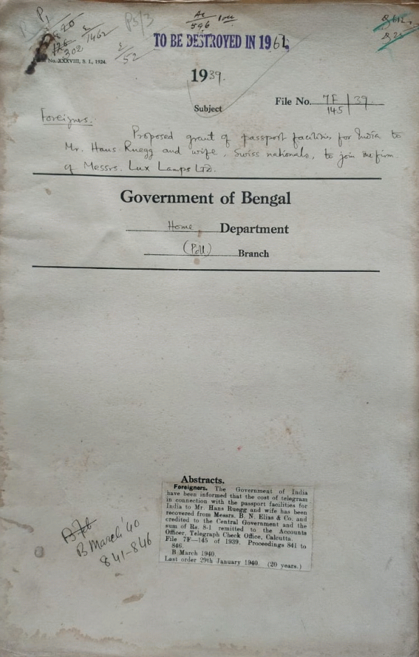 | Rack No. 42, Bundle No. 06, Sl No. 304 Medical treatment of the waives & Children of Bengal Body Guard Unit. | Rack No. 42, Bundle No. 06, Sl No. 305 Proposed grant of 'No Objection' certificate to Mr. Chi Han Mir a Chinese national to return to work. | Rack No. 42, Bundle No. 06, Sl No. 306 Cancellation of Passport of Mrs. Robindra Das Gupta & A. Awwal Chowhury State Scholars. | Rack No. 42, Bundle No. 06, Sl No. 307 Grant of Passport to Mr. Hans Ruegg & wife Swiss National. | Rack No. 42, Bundle No. 06, Sl No. 308 Disposal of the pension of Syed Khusrow Meerza of the Nizamat Family. | Rack No. 42, Bundle No. 06, Sl No. 309 Visit of Mr. L.A. Thow of new York to India for the purpose of making pictures of India and of Indian life. | Rack No. 42, Bundle No. 06, Sl No. 310 Payment of Charges for Indian News Agency Telegraphs. |